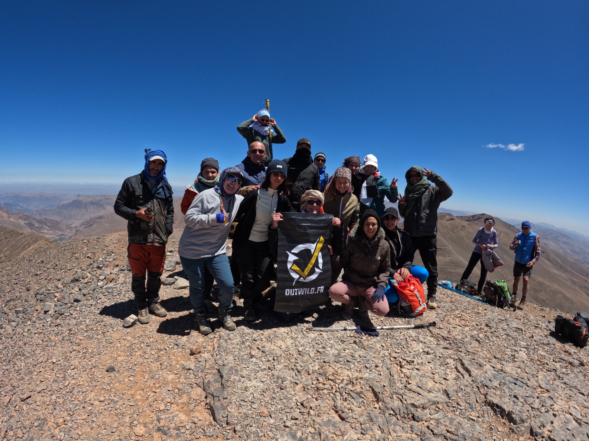 Une aventure extraordinaire au cœur de l'Atlas marocain avec l'ascension du sommet M'goun, culminant à 4071 mètres d'altitude avec un super groupe Outwild - Expés & Voyages et une superbe équipe locale marocaine
