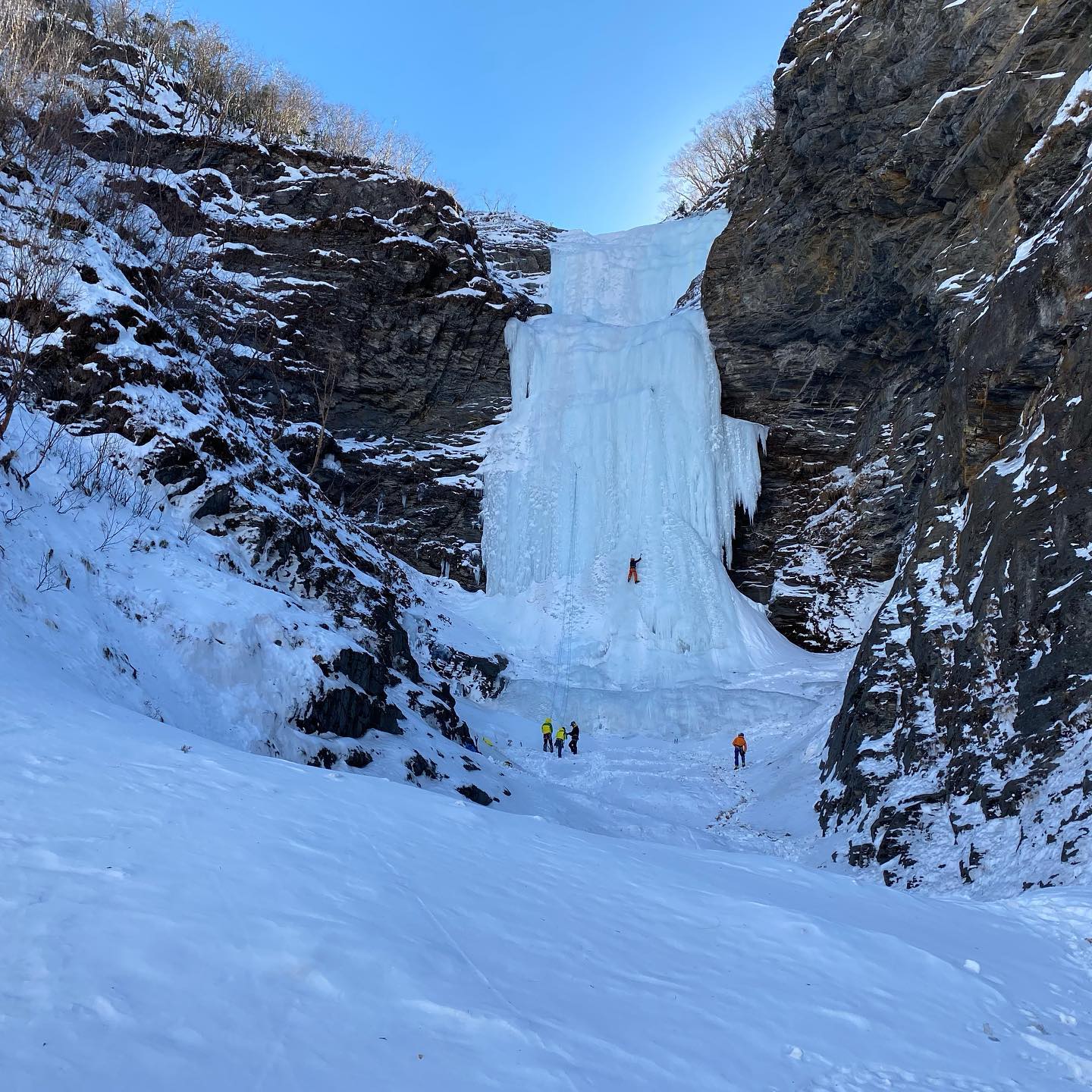 Sessions d’escalade sur cascades de glace et parois glacées, encadrées par des guides expérimentés.