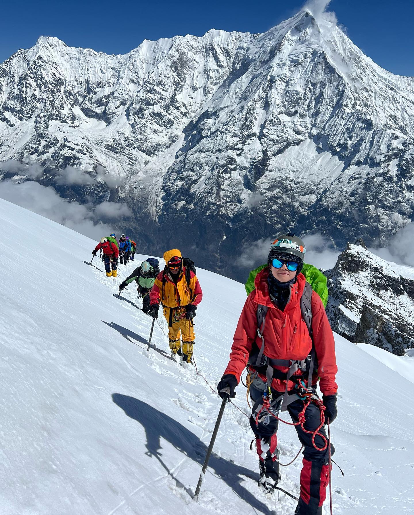 Le cours d’alpinisme de niveau 1, d’une durée de 20 jours, s’est terminé avec succès. Ce programme est une première étape essentielle pour ceux qui aspirent à devenir alpinistes, offrant une préparation solide pour de futurs défis en haute montagne. Les participants ont profité des vues spectaculaires sur les chaînes du Langtang et du Jugal Himal.